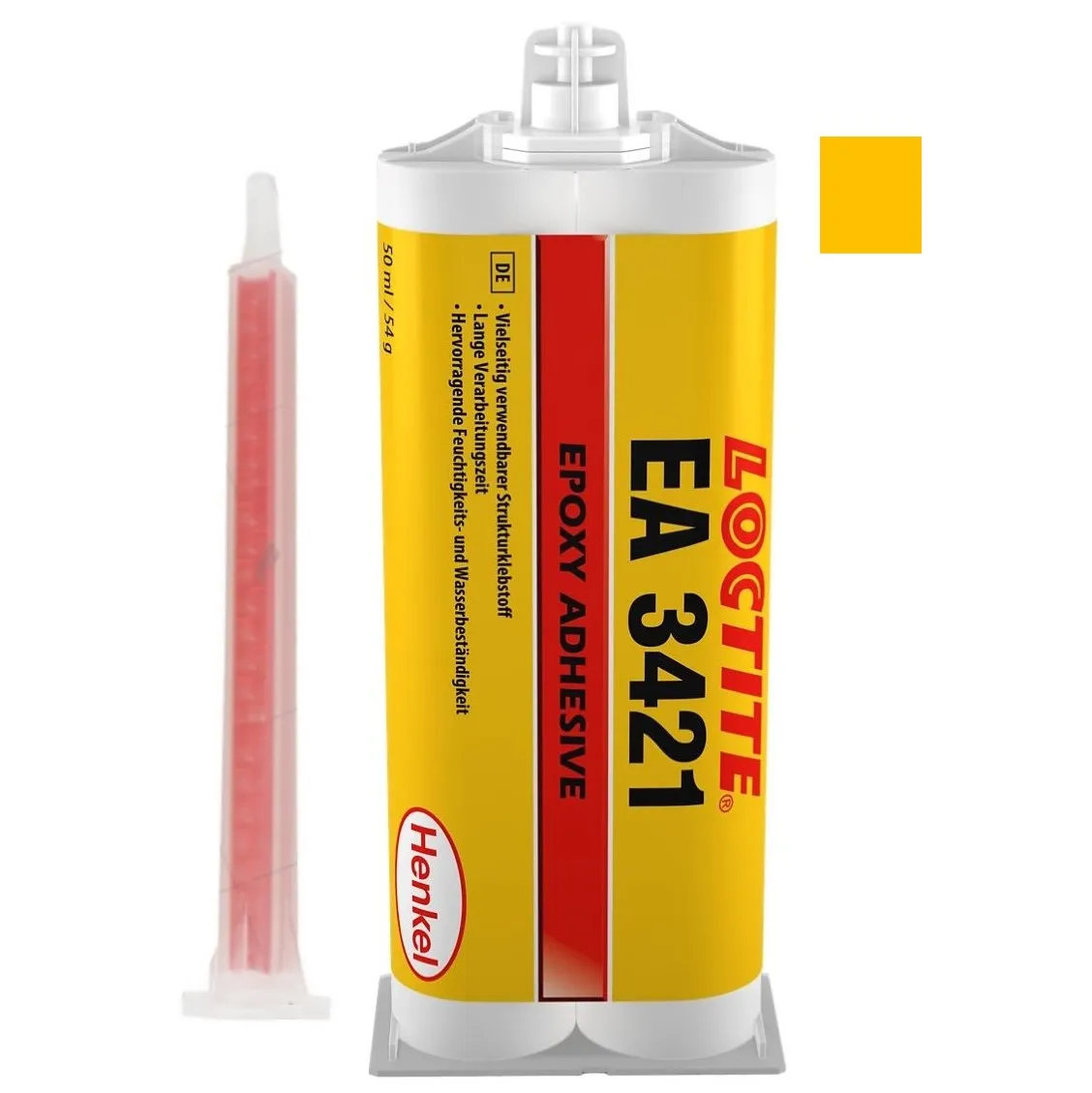 Adhesivo epoxi bicomponente, de color ámbar claro y de uso general.