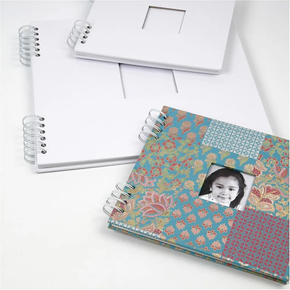 Album personalizable blanco con ventana, dos tamaños. Tapa de cartón duro, 20 hojas de 250g