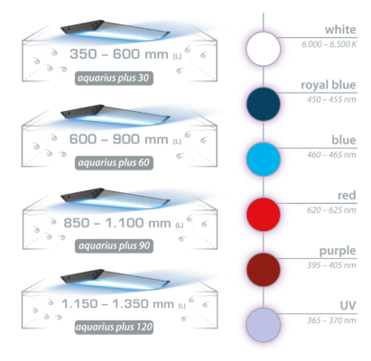 - Para longitudes de acuario: aprox. 1.150 – 1.350 mm