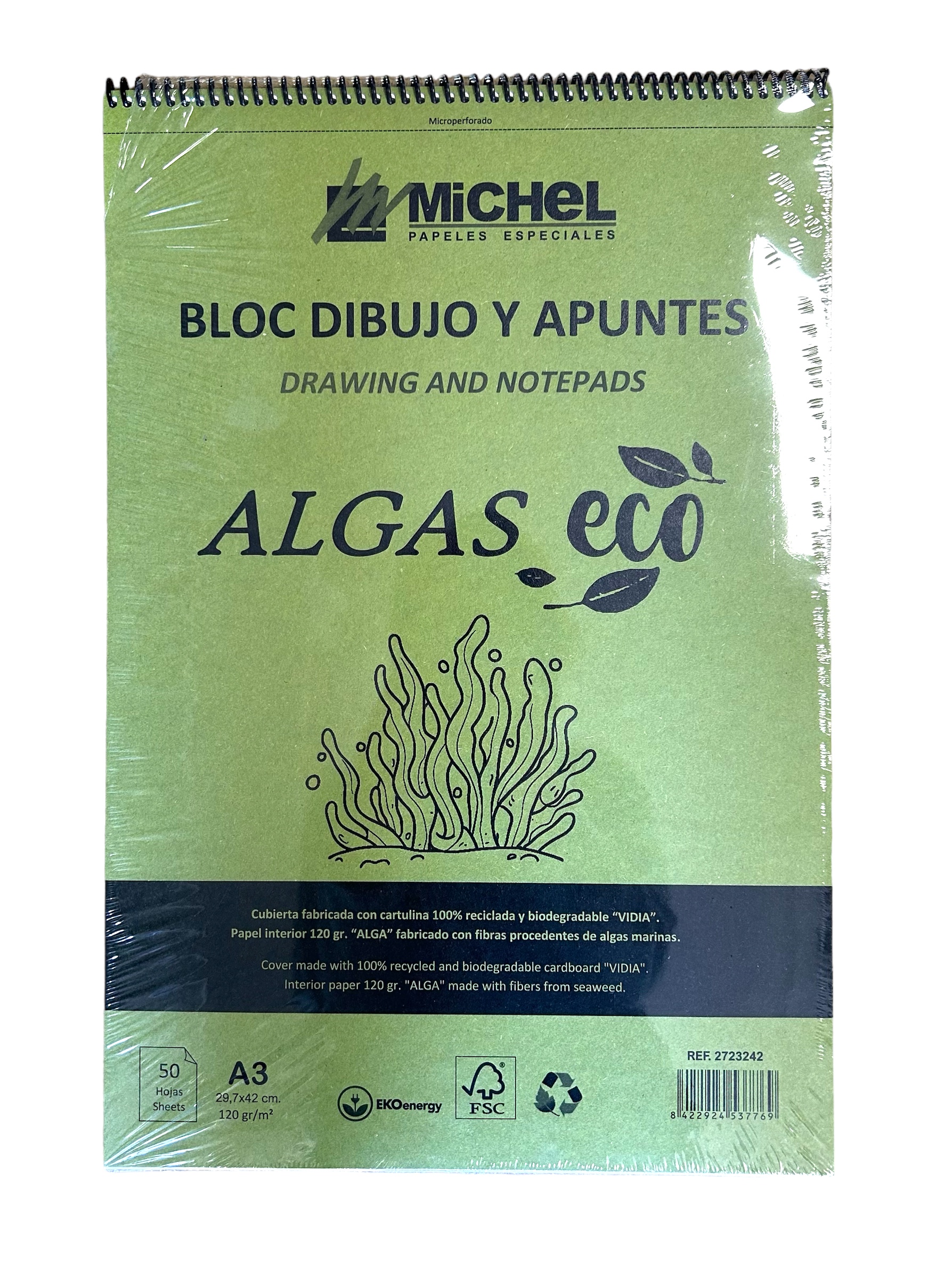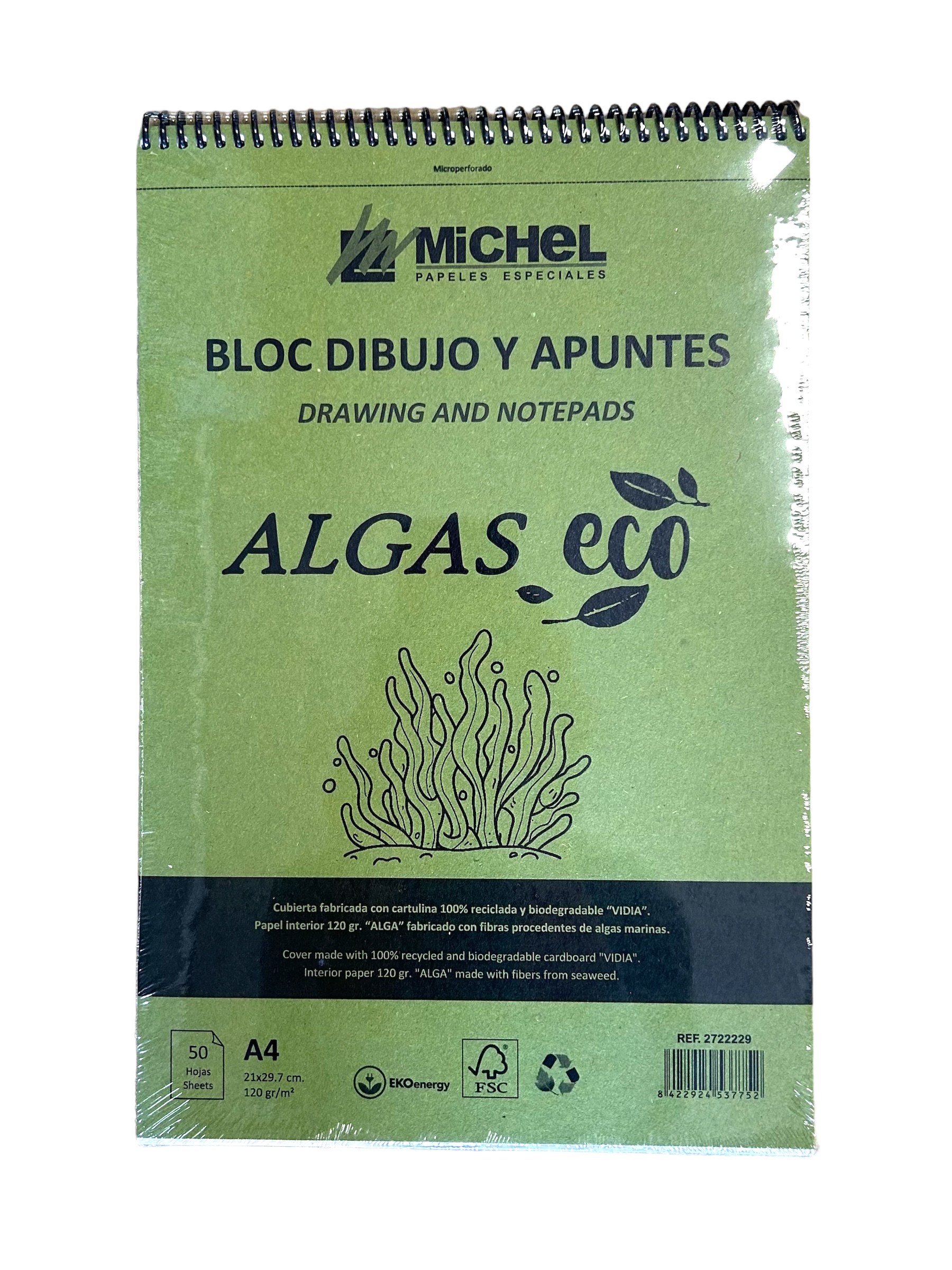 Bloc ecológico algas para dibujo y apuntes. 50 hojas 120g En 4 tamaños