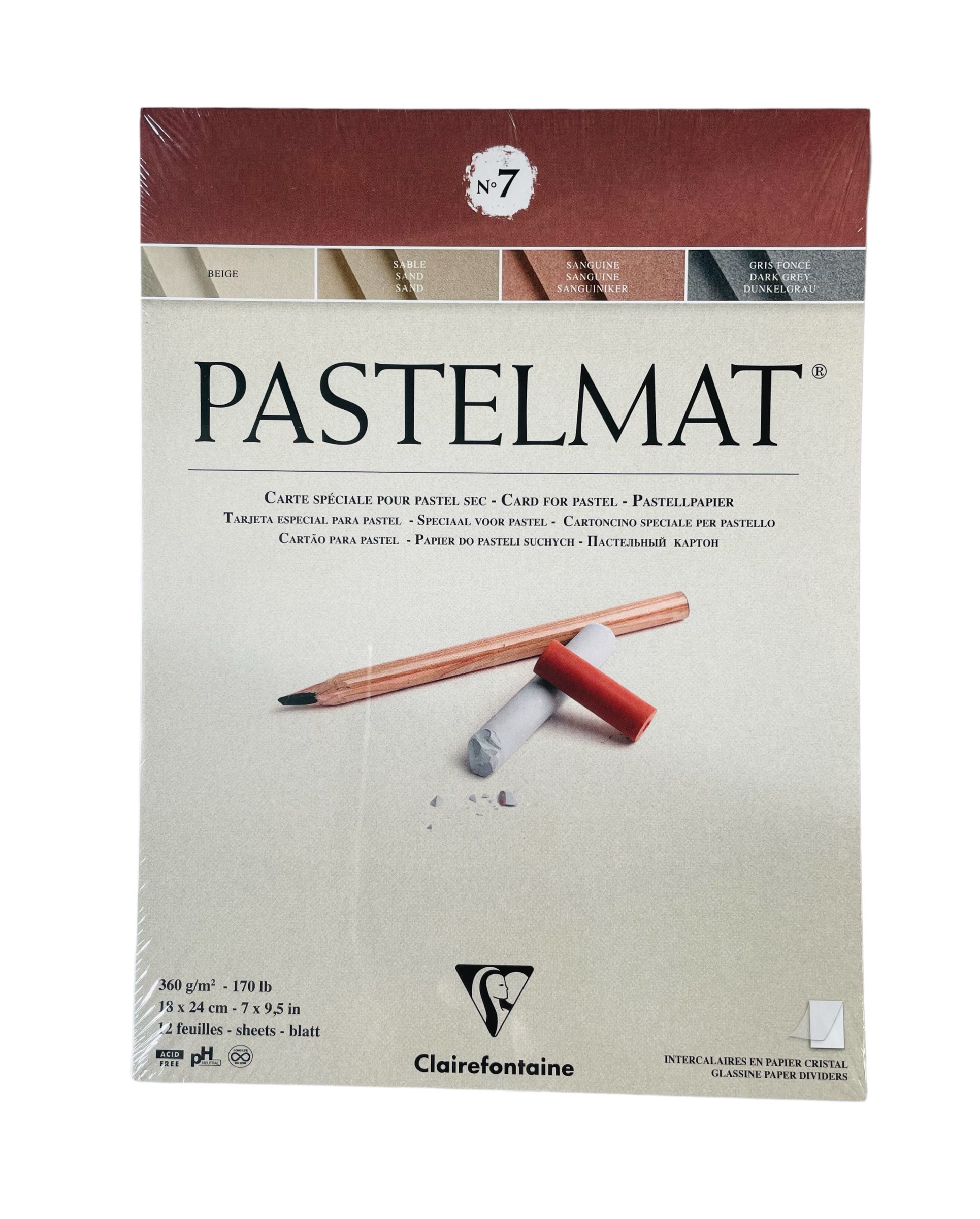 Bloc Pastelmat, 12 hojas 360g sin ácido papel 4 colores: beige, arena, sanguina y gris oscuro, 3 de cada.