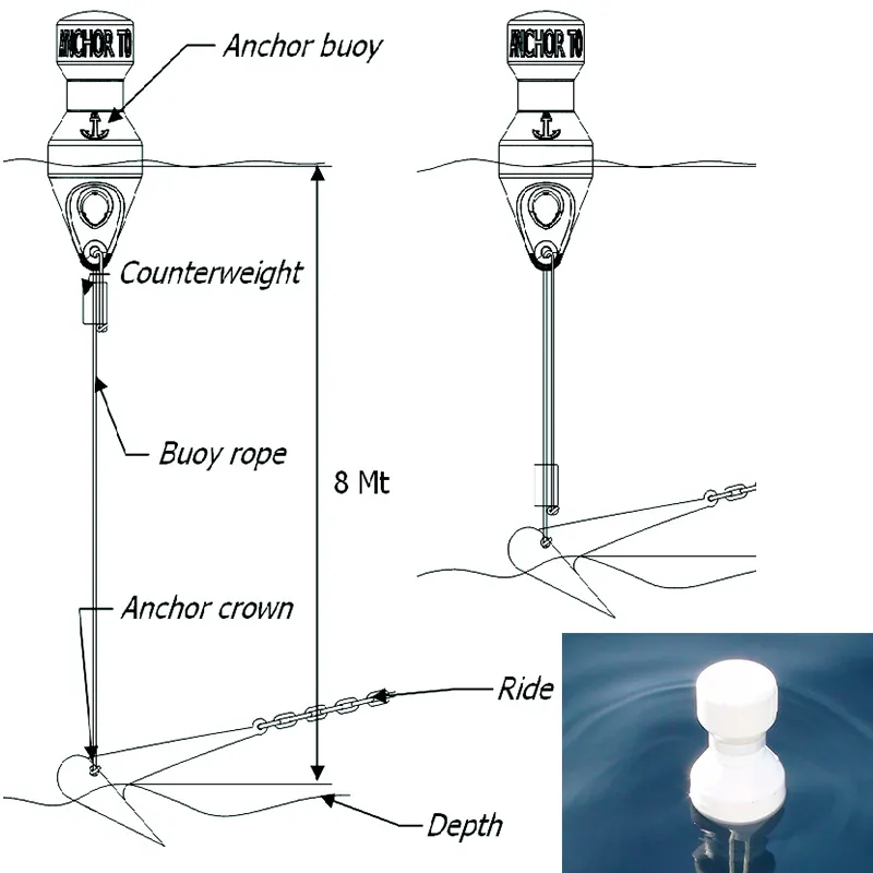 Marca la posición exacta de su ancla y le ayuda a sacarla en fondeaderos saturados.
