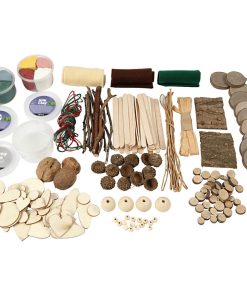 Silk Clay, Foam Clay, Sticky Base, hojas de fieltro en colores surtidos, mosaicos de madera surtidos diseños, láminas de corteza, discos de madera, cuentas de madera en diferentes tamaños, cordel de cáñamo en colores surtidos, mezcla de piezas de madera, palos de palo, bastón de papel, palos de madera, gorros de bellota, cáscaras de nuez, hilo de papel de alambre