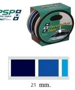 Cinta decorativa adhesiva monocromática en 3 segmentos (fino-ancho-fino) con un ancho de 44 mm.