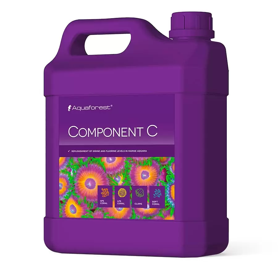 El componente C está diseñado para complementar las deficiencias menores de yodo y flúor en un acuario marino. El skimmer y los medios de filtración tienden a eliminar los oligoelementos del agua del sistema de acuario cerrado, lo que hace necesaria la suplementación con micronutrientes. En los acuarios marinos, el yodo es responsable del funcionamiento general de las células y de la transferencia de nutrientes.