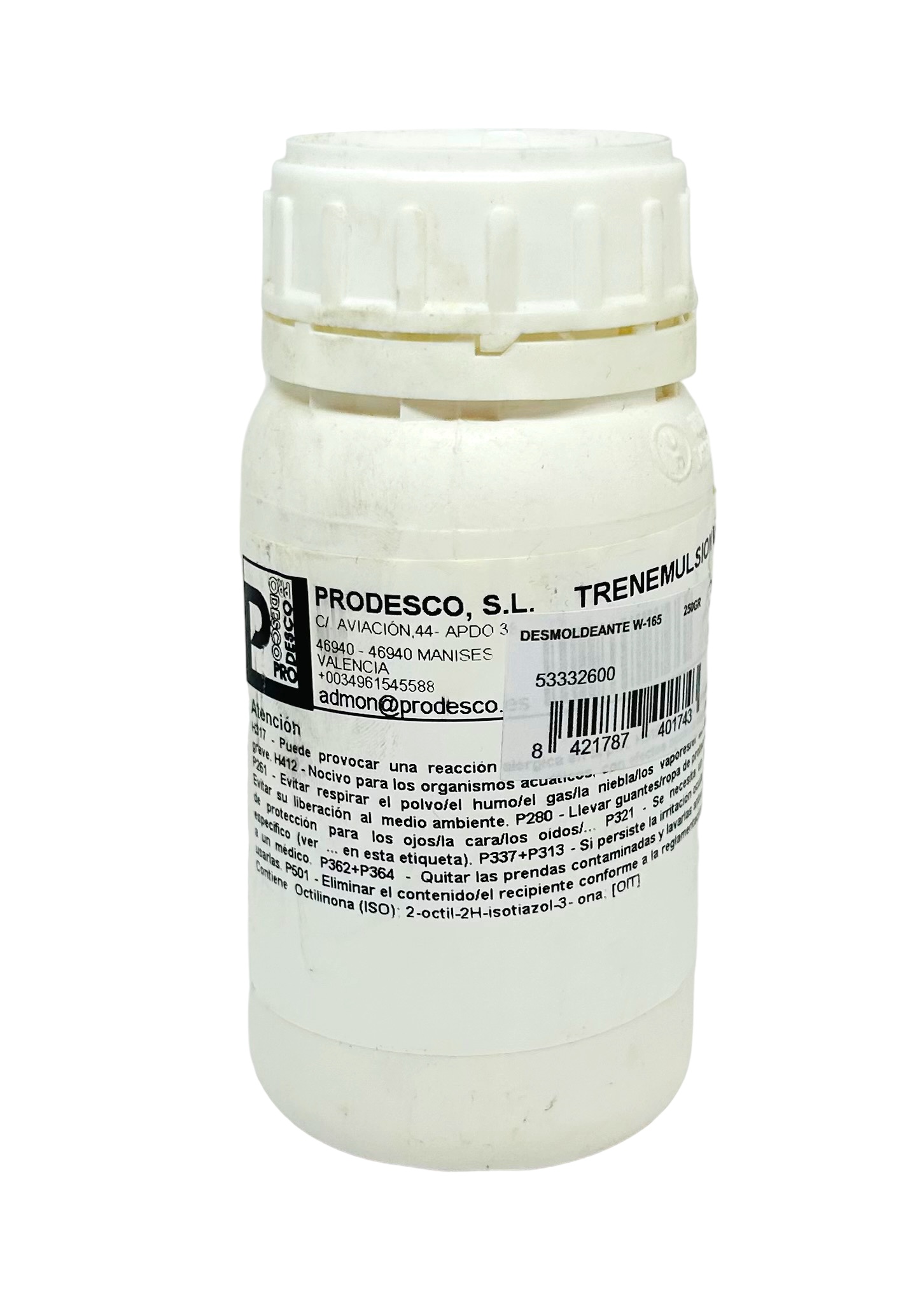 Desmoldeante trenemulsion w-165. Producto aislante para la producción de moldes de escayola. En 1kg y 250g