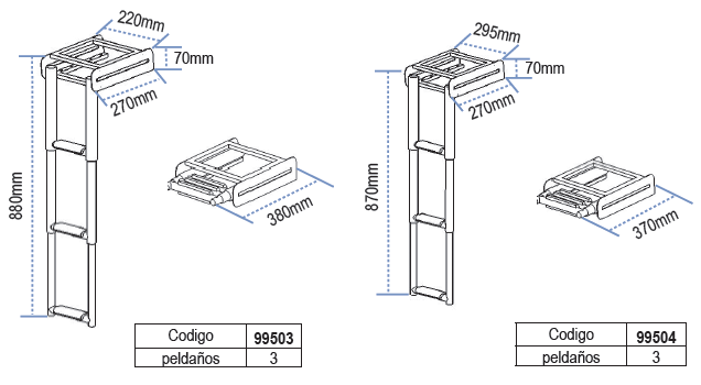 ESCALERA EN INOX TELESCÓPICA PARA PODER COLOCAR BAJO PLATAFORMA Y OCULTA.
