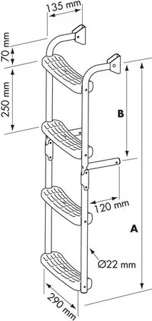 ● Escalera en inox 316,con 2+2 peldaños,ancho de 325 mm.