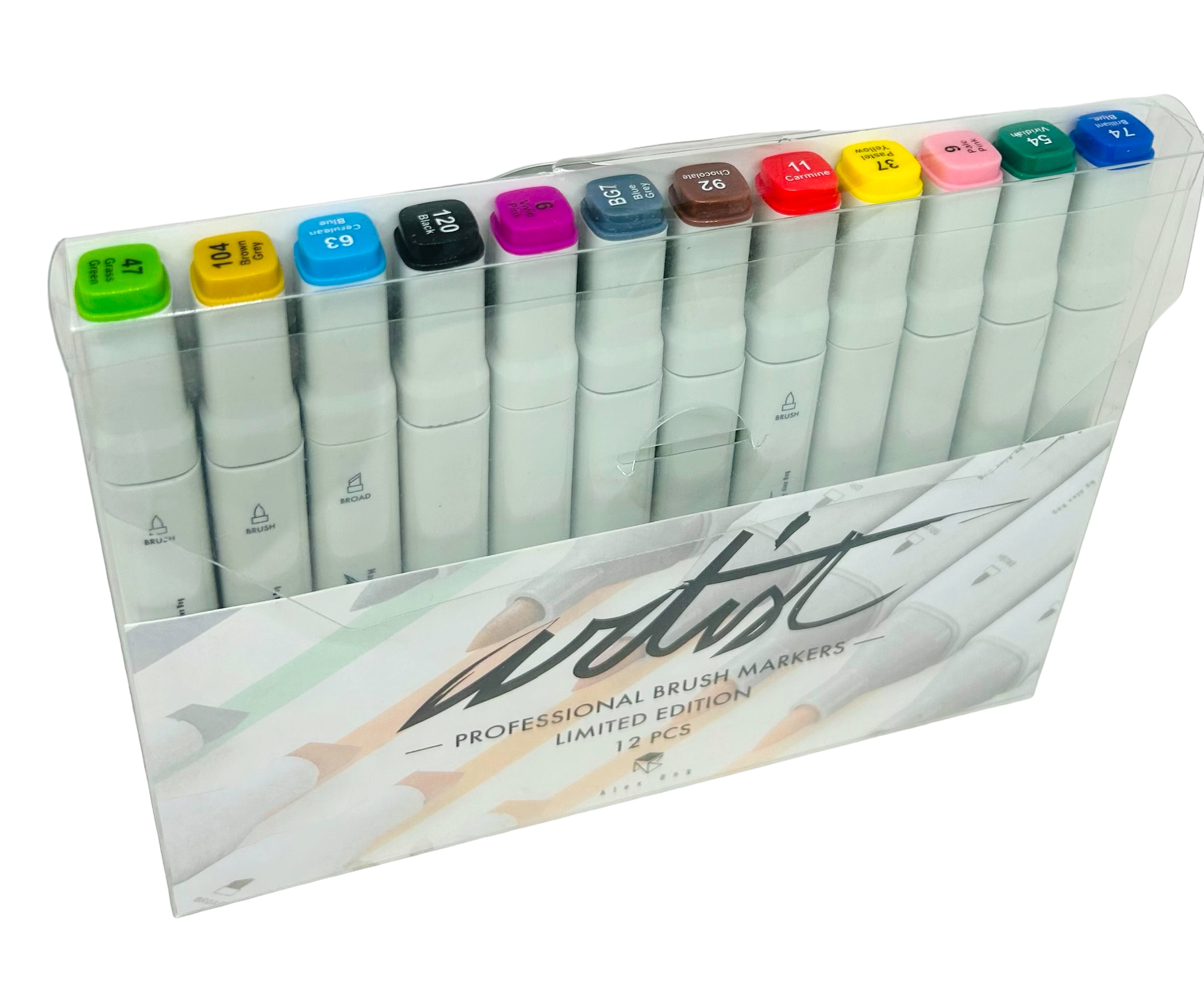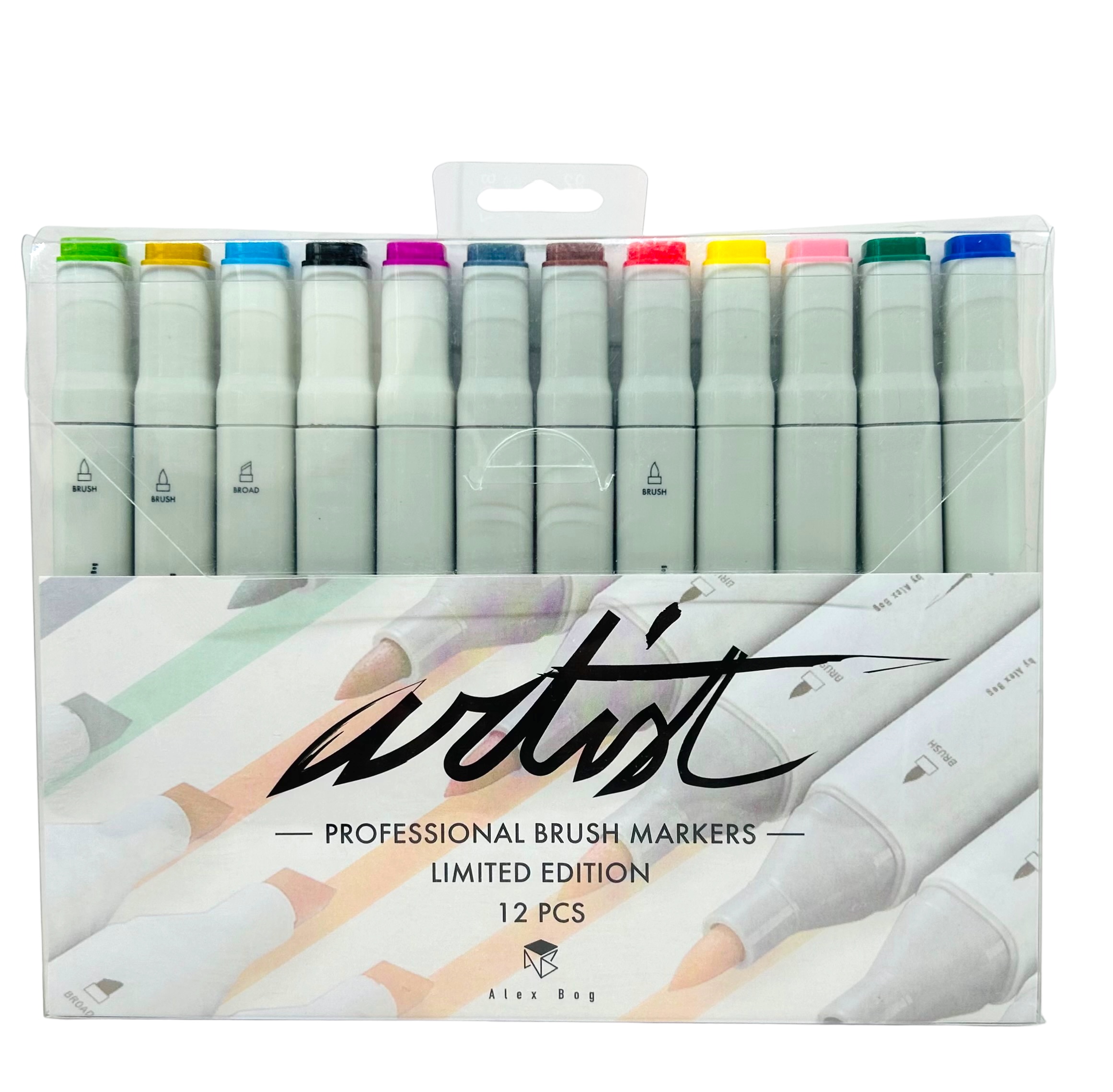 Estuche 12 rotuladores profesional artist al alcohol, punta pincel y biselada.