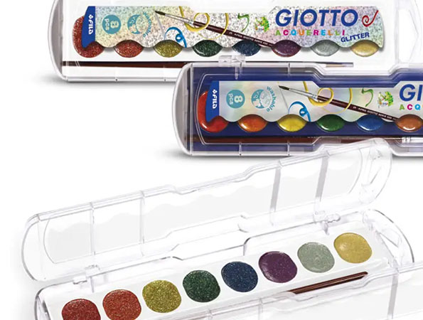 Pastillas de acuarela con acabados glitter (efecto purpurina) y metal (efecto metalizado). Con solo una pequeña aportación de agua se diluyen para crear una excelente solución de pintura. Se pueden lavar fácilmente de la piel con agua y jabón y de la mayoría de tejidos con un ciclo normal de lavadora. Incluye 8 pastillas y un pincel con punta redonda Giotto serie 400.