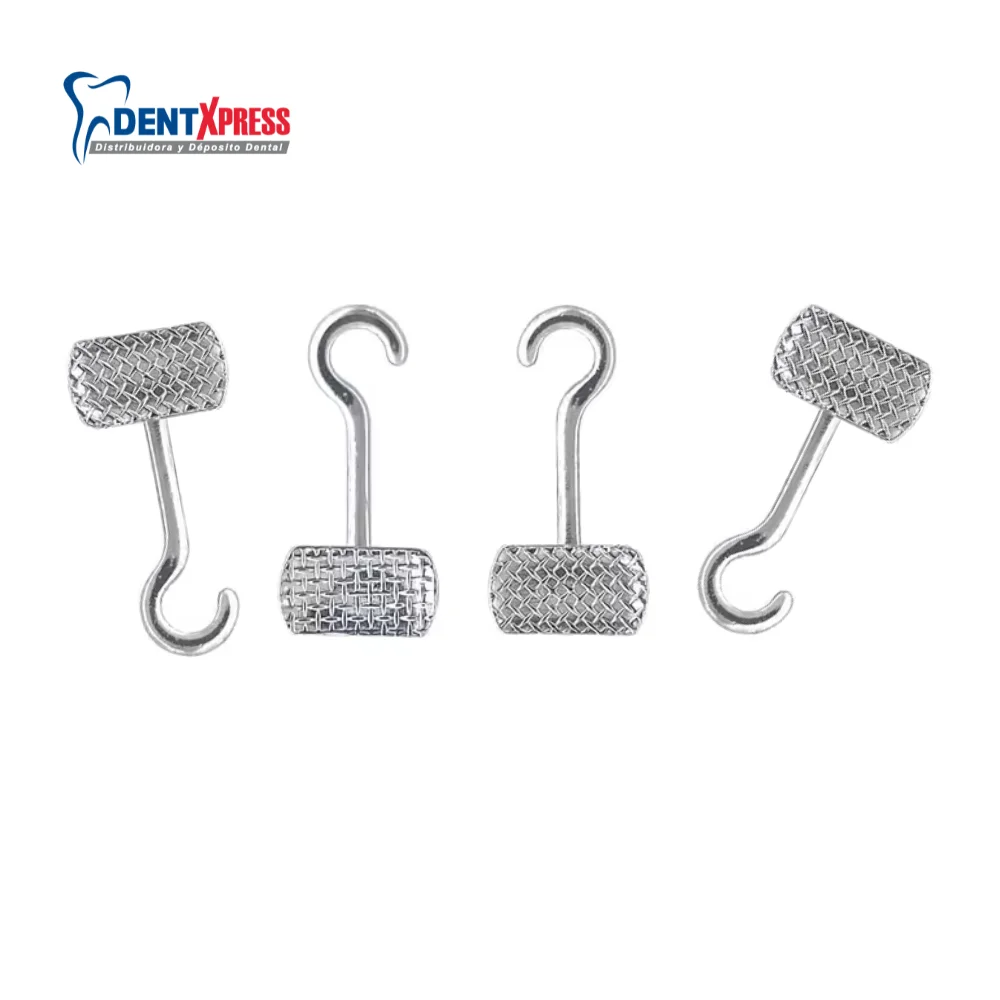 Los ganchos crimpables permiten la colocación de elásticos ortodónticos entre diferentes puntos en la boca, ayudando en la corrección de la mordida, la alineación dental y el cierre de espacios.