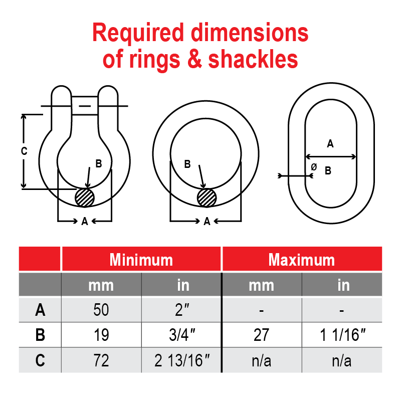 Carga de trabajo segura (SWL): 36 kN (3670 kg/8091 lb)