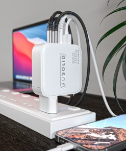 Elige el adaptador USB de 4 puertos GO SOLID! 100W (USB A + USB C + USB C + USB-C) y experimenta la comodidad y eficiencia de cargar todos tus dispositivos con un solo adaptador potente. Simplifica tu vida y disfruta de la libertad de estar siempre conectado. ¡Ordena ahora y despídete del lío de cargadores!