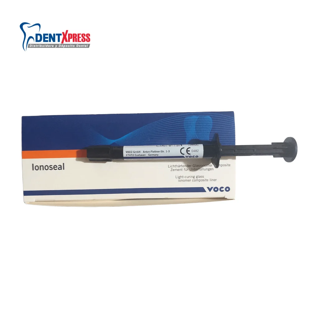 Ionoseal Voco 2.5gr es un material de ionómero de vidrio fotopolimerizable diseñado específicamente para utilizarse como base o forro bajo restauraciones en odontología. Este material combina las ventajas del ionómero de vidrio, como la liberación de flúor, con la capacidad de endurecerse bajo luz, lo que ofrece un control más preciso del tiempo de trabajo.