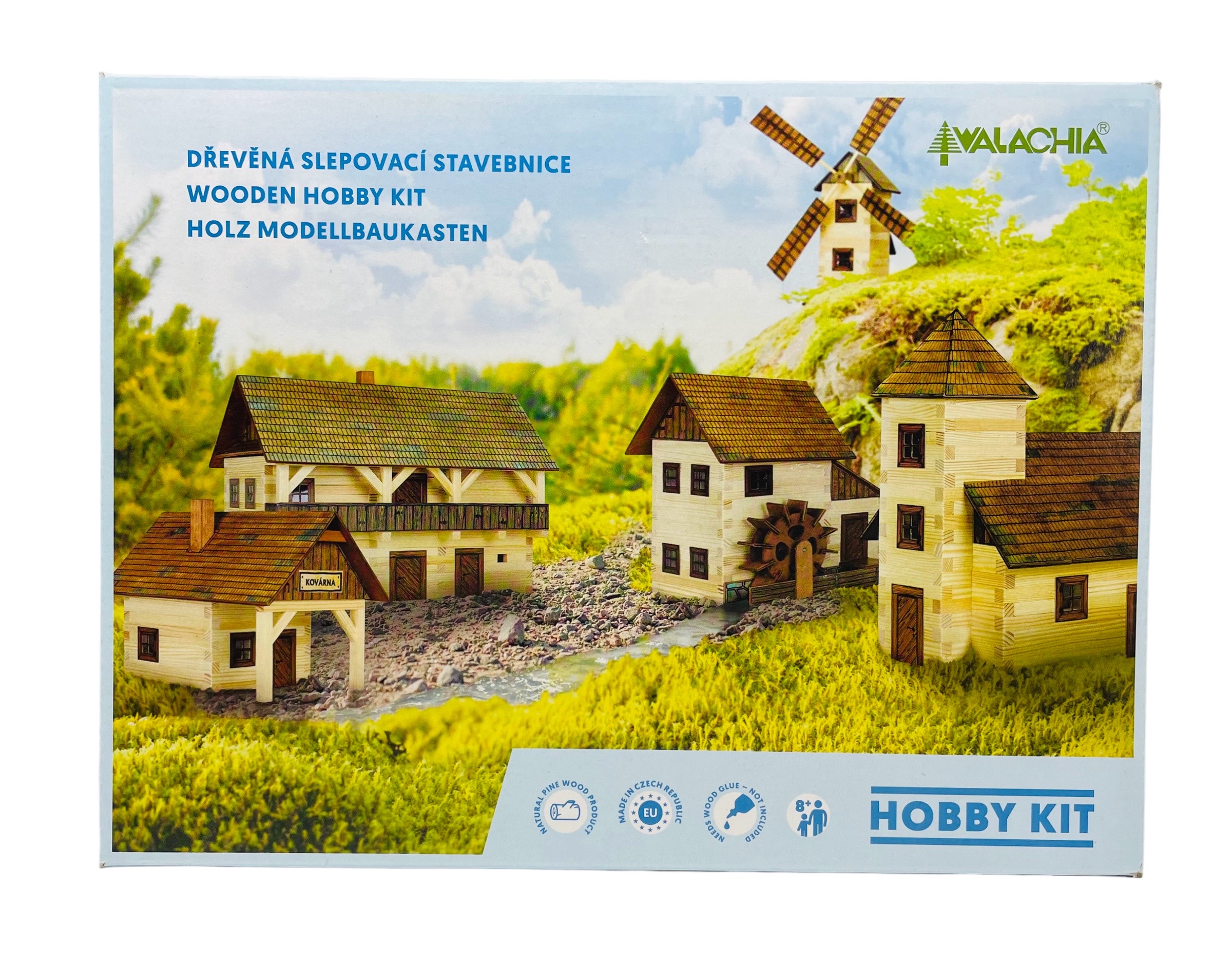 Kit de construcción para construir un edificio tradicional a escala en miniatura a partir de troncos reales. Este kit de artesanía en madera 3D viene con bloques de madera de diferentes longitudes, piezas de construcción para la construcción de techos, ventanas, puertas, otros componentes e instrucciones de diagramas paso a paso, es decir, pictogramas, con símbolos para actos de trabajo separados.