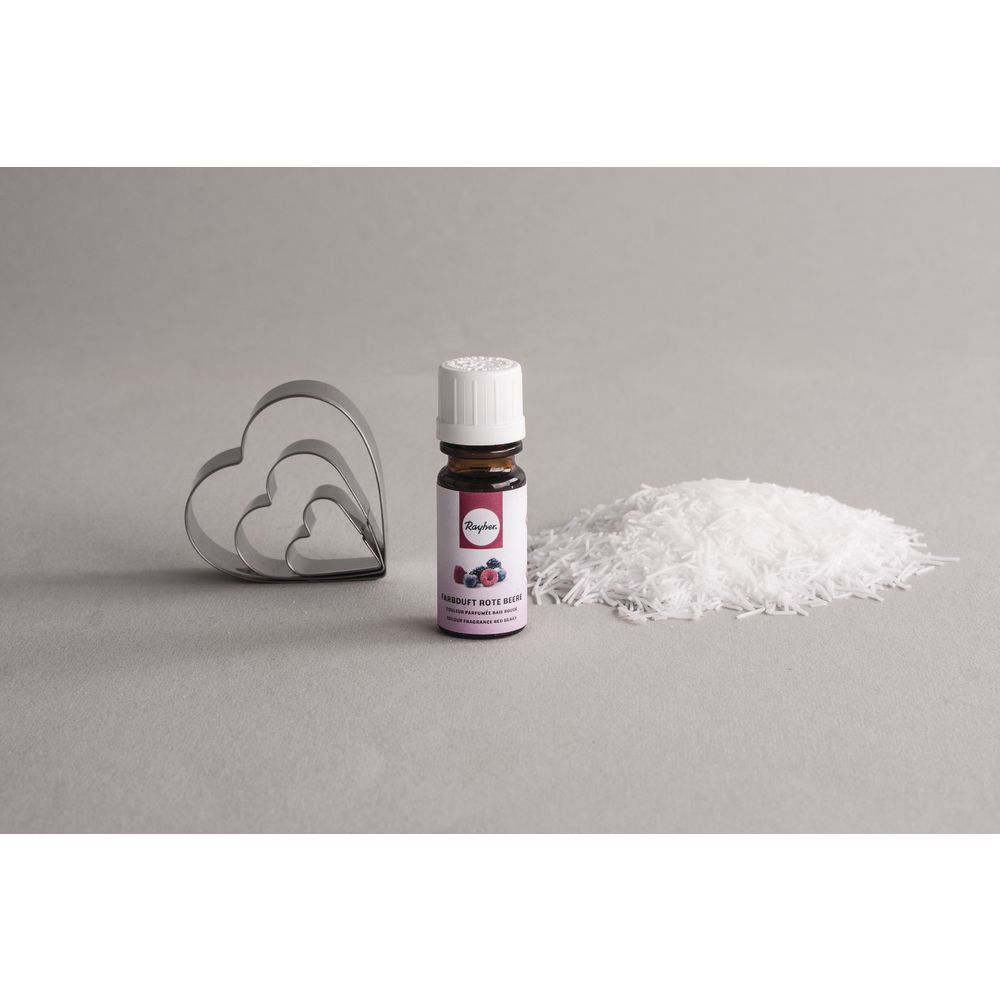 Déjate seducir por un nuevo pasatiempo limpio y aromático: ¡amasar jabón! En el kit encontrarás todo el material para hacer tus primeros jabones. Puedes elegir: regalar jabones caseros aromáticos o el set completo, una fantástica idea para el tiempo libre. Moldear jabón con el jabón para amasar es muy sencillo: mezcla los restos de jabón con agua caliente, un poco de aceite de cocina y el colorante aromático. En cuanto la mezcla esté tibia, amásala para formar jabones o dale forma con los cortadores de galletas. ¡Ten en cuenta que el jabón debe secarse de 3 a 4 días después de su fabricación! Este jabón para amasar de alta calidad es neutro para la piel, dermatológicamente probado y 100 % vegano. Contenido del kit: 250 g de jabón para amasar, 10 ml de colorante aromático «Frutos Rojos», 3 cortadores de galletas con forma de corazón de 2 x 2,5 cm, 4 x 4 cm y 6 x 6 cm, instrucciones detalladas e ilustradas. El contenido es suficiente para unos 10 jabones con forma de corazón. Además, se necesita: un crisol y un baño maría, aceite de cocina, una báscula de cocina y un recipiente de plástico. Ingredientes del jabón para amasar: agua, glicerina, lauril éter sulfato, laurato de sodio, miristato de sodio, hidróxido de sodio, cloruro de sodio, estearato de sodio, lauril sulfato de sodio, sacarosa, etidronato tetrasódico, sorbitol sódico, propilenglicol, aceite de ricino PEG 40, dicarboximetilcelulosa trisódica, alaninato de alaninato. No es un juguete para niños; usar solo bajo la supervisión de un adulto.