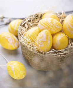 Si quieres aprender a crear efectos marmoleados en los huevos, este kit de Pascua es perfecto para ti. Contiene todo lo que necesitas para empezar con buen pie. Utiliza pinturas marmoladas líquidas y moja los huevos en un baño de agua. El resultado son los huevos marmolados más finos, que puedes usar como decoración en primavera.