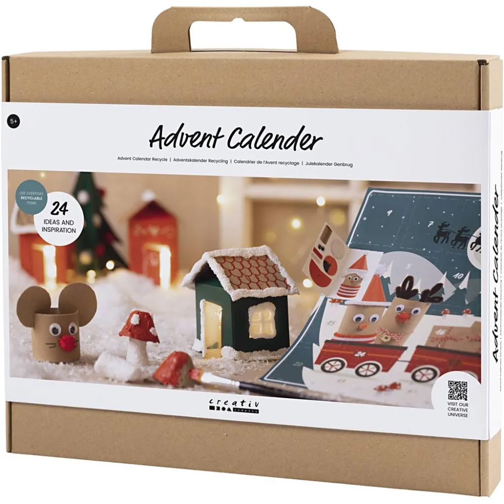 Este calendario de Adviento ofrece a los niños una auténtica experiencia de reciclaje navideño. Cuenta con 24 puertas, cada una de las cuales oculta un nuevo y divertido proyecto de reciclaje. Busca copas de huevo, cartones de leche y rollos de papel higiénico, y dales nueva vida con los materiales creativos del kit. El resultado es un maravilloso paisaje invernal que crece día a día.