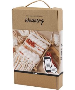 Contenido: Telar (sin montar), pegamento, 6 m de hilo warp, peine, aguja de hilo y hilo en diferentes colores y cualidades – 30 m de hilo en total.