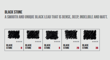 Lápices de piedra negra «Pierre Noire» con 5 graduaciones disponibles. El tono es negro muy oscuro, intenso y mate.