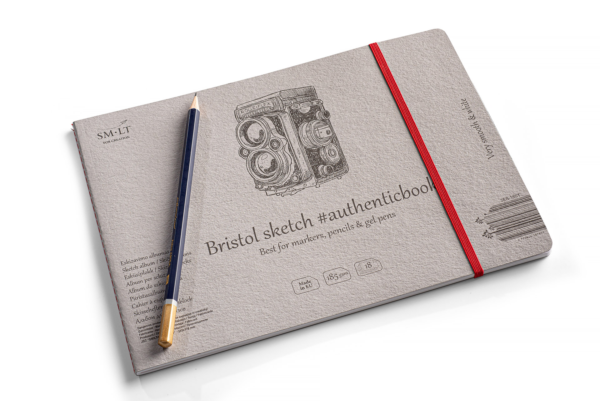 Papel Bristol blanco, muy suave. Ideal para dibujo mecánico y trabajos gráficos con todo tipo de lápices, bolígrafos, tinta y rotuladores. Papel interior libre de ácido y con certificación FSC. Tapa y separador de cartón color natural. El álbum está cosido y permite realizar dibujos panorámicos.