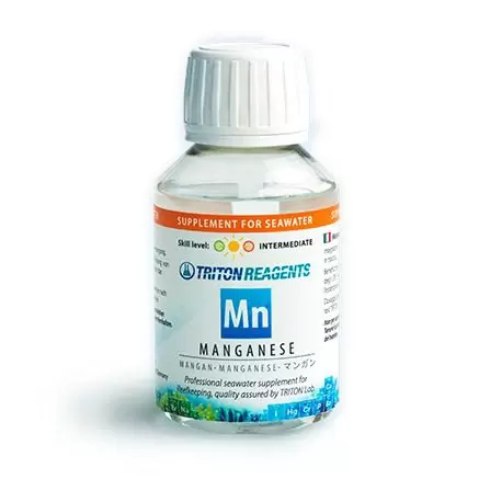 - Suplemento de agua de mar de oligoelementos de manganeso. Beneficioso para los procesos enzimáticos en acuarios de arrecife. Puede promover la coloración en corales SPS / LPS.