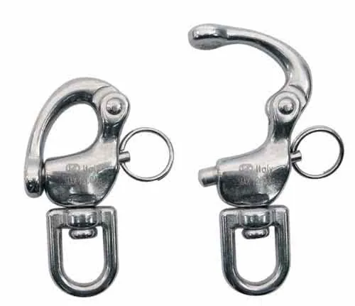 Mosquetón de disparo rápido giratorio para driza con ojillo.