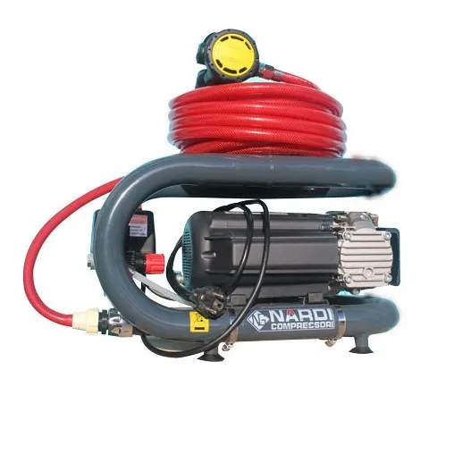 Sistema de compresión por pistón sin lubricación, comprime el aire circundante.