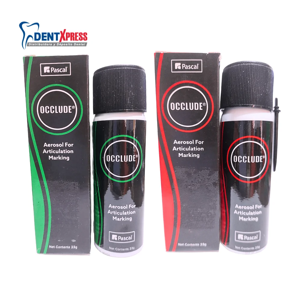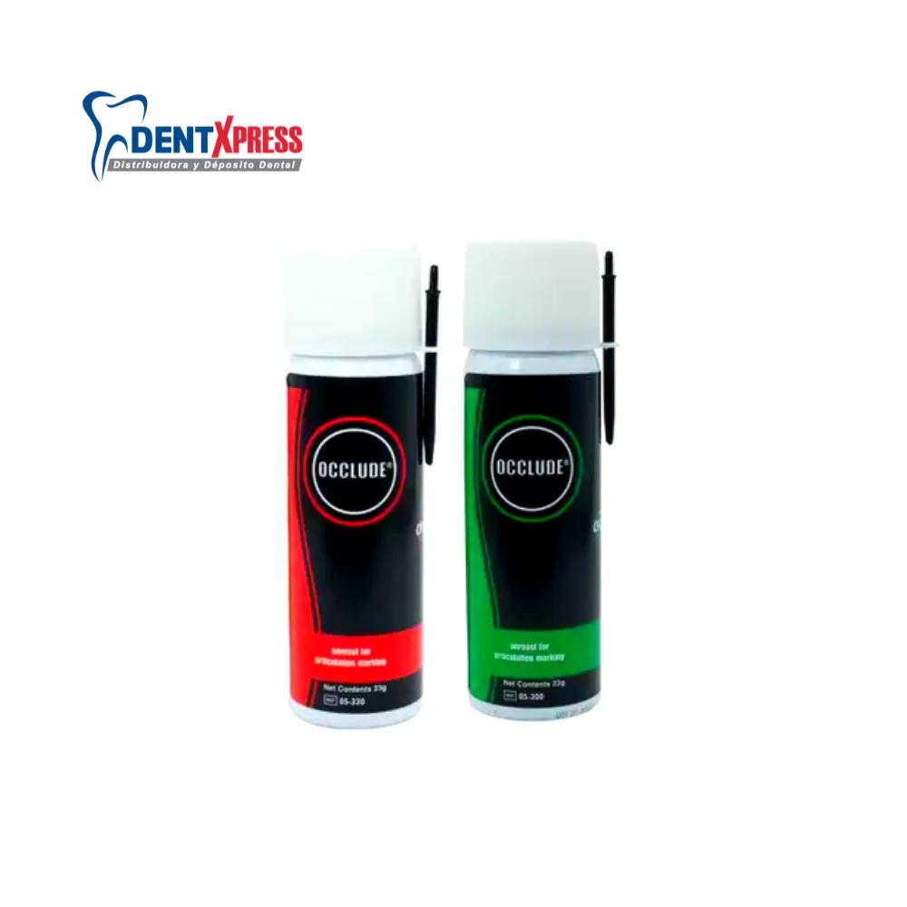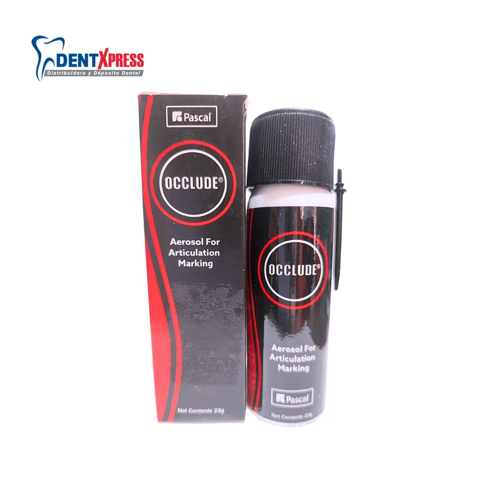 Occlude Aerosol es un marcador en spray utilizado en odontología para identificar puntos de contacto y ajuste en diferentes restauraciones dentales, prótesis y ortodoncia. Este aerosol es un producto popular para evaluar la precisión de oclusión y el contacto entre superficies dentales, permitiendo al profesional realizar ajustes en tratamientos de prótesis o aparatos dentales.