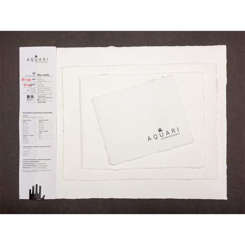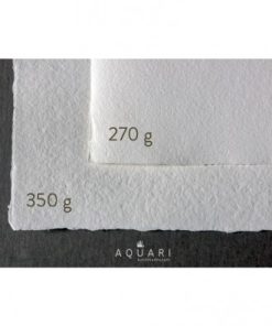 Papel hecho a mano en formatos apaisados, apto para cualquier técnica pictórica húmeda (acuarela, acrílico, témpera, tinta, etc.) o seca (grafito, lápiz, carboncillo, pastel…). Para la pintura al óleo, el papel se puede tratar con gesso u otros componentes.