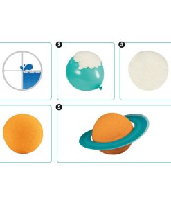 - Acaba de decorarlo como más te guste, puedes usar cartulinas de colores, cartón, etc. ¡Combina todas las partes para crear tu nuevo planeta!