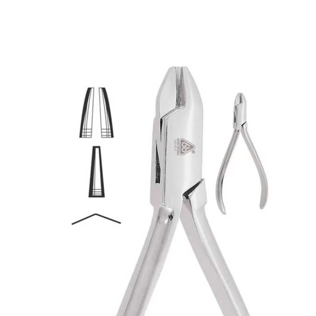 La disposición estratégica de sus tres picos facilita la creación de dobleces uniformes y precisos sin comprometer la resistencia del alambre, lo que la convierte en una herramienta indispensable en la práctica ortodóntica y protésica.
