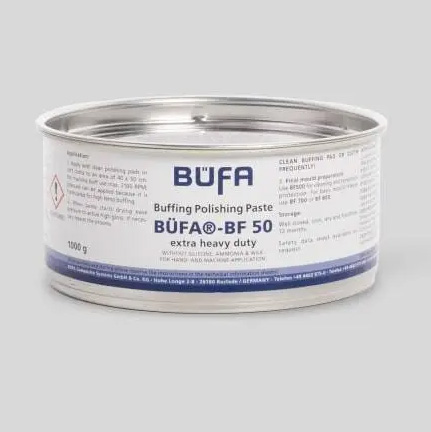 ¡Logra un acabado impecable con nuestro Pulimento BF-50! Pasta de pulido y abrillantado extrafuerte, ideal para superficies de gelcoat. Elimina arañazos y marcas de superficies de poliéster y epoxi. Fórmula sin silicona, amoníaco ni cera, apta para aplicaciones manuales o mecánicas, incluso después de usar papel de lija (grano 800).