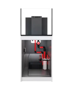 En la parte superior, los acuarios Reefer G2+ utilizan una gran caja de desbordamiento con bombas de retorno duales orientadas hacia los lados para una circulación de agua óptima y una mayor limpieza de la superficie. La caja de desbordamiento incluye una tapa que oculta las tuberías y peines fácilmente extraíbles para una rápida limpieza.