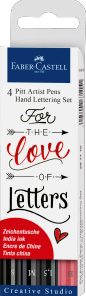 Set 4 rotuladores Pitt artist pens «lettering», 1 punta pincel rojo, negros de 1,5mm, 0,7mm y 0,3mm