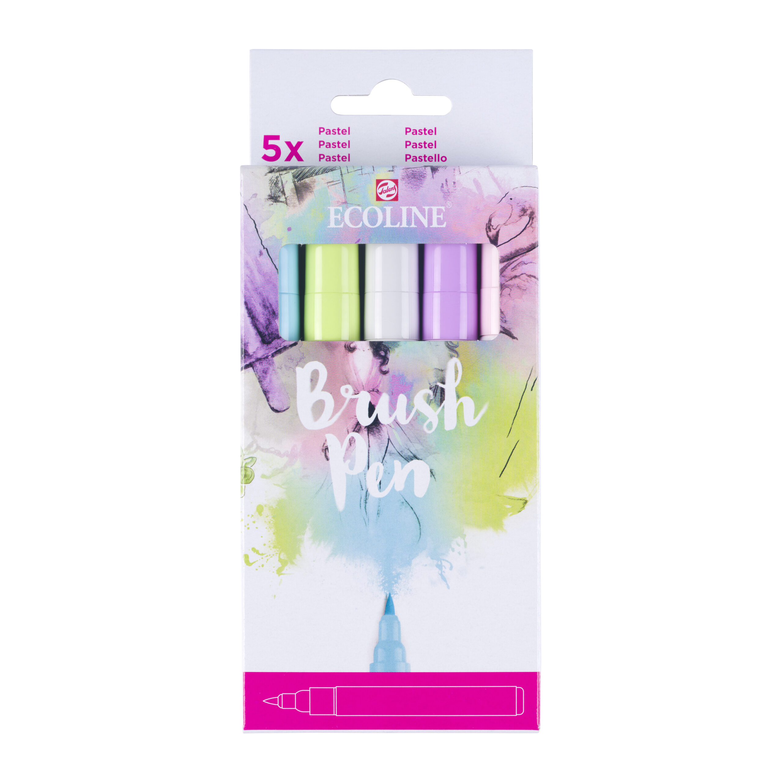 Set 5 rotuladores pastel punta pincel ecoline