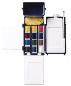 Set de exterior acuarela Cotman 12 colores con paleta integrada, recipiente para agua e anillo, frasco para el agua, esponja y pincel