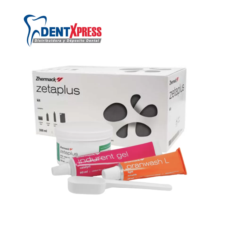 Zetaplus L Mini Kit: 1 Zetaplus 200 ml + 1 Oranwash L 40 ml + 1 Indurent Gel 60 ml + 1 bloc de mezcla (8 hojas) + cuchara medidora
