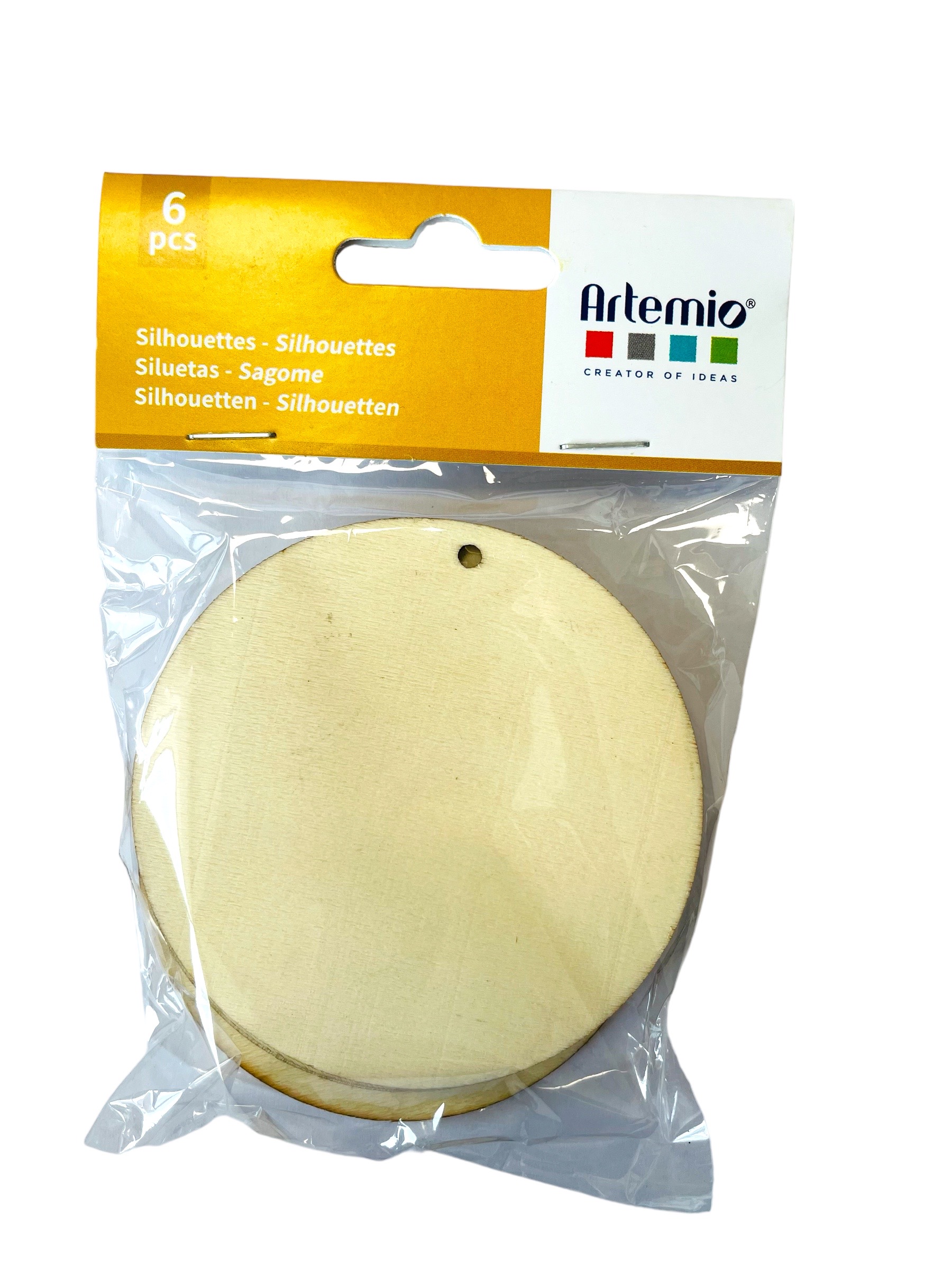Discos de madera de 8cmx2mm perforados para colgar.