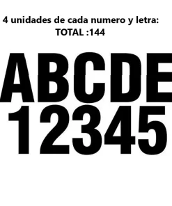 Rotulación: Kit de 144 números y letras Negras adhesivos (4 de cada)–8 cm