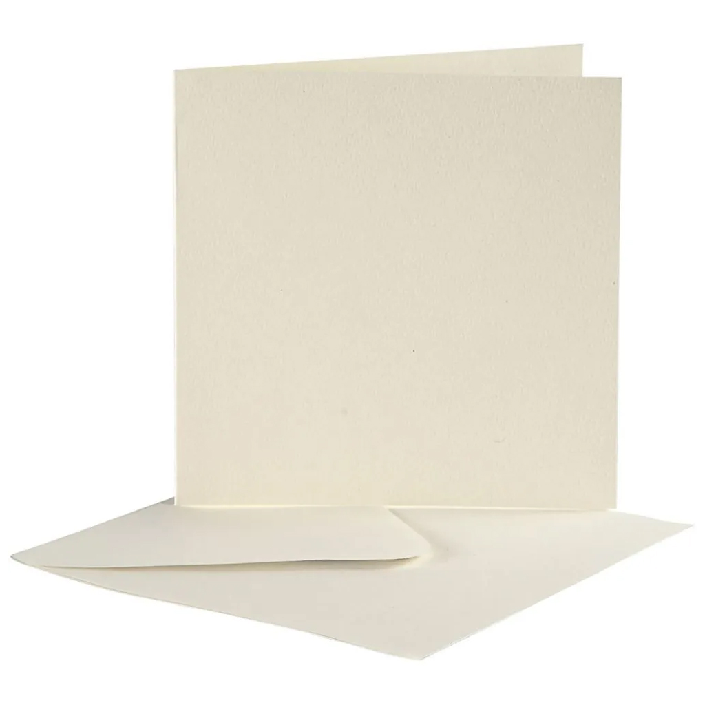 Tarjetas y sobres. 1 Paquete, 10 Set, 12,5×12,5 cm, 13,5×13,5 cm, Blanquecino