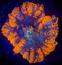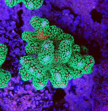 Necesita de iluminación intensa y requiere mayor iluminación actínica que otras especies “no-azules” .