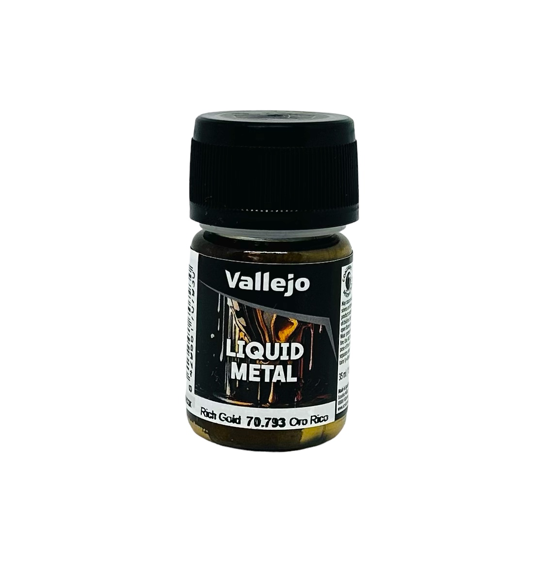 Los colores de esta gama se han formulado con pigmentos metálicos dispersados en alcohol, por lo que ofrecen un acabado metalizado de excepcional realismo. Los colores se pueden mezclar entre sí para modificar la tonalidad, y secan rápidamente sobre todo tipo de soportes. Los pinceles pueden limpiarse con alcohol o con nuestro Limpiador de Pinceles al alcohol (ref. 28.900). Oro Líquido es inflamable por su contenido en alcohol, pero no contiene xileno, ni tolueno. Vea información relativa a las certificaciones de producto en el apartado de seguridad.